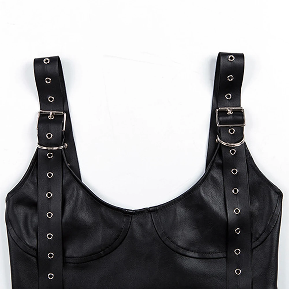 Женский короткий топ с пряжкой и ремешками без рукавов, обтягивающий бюстгальтер, жилет, Клубная одежда, удобный черный полиэстер, повседне...