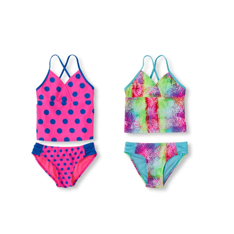 Девушки роза в горошек танкини костюмы Новый 2019 детская одежда для девочек из двух частей для плавания летняя пляжная одежда купальный кост...