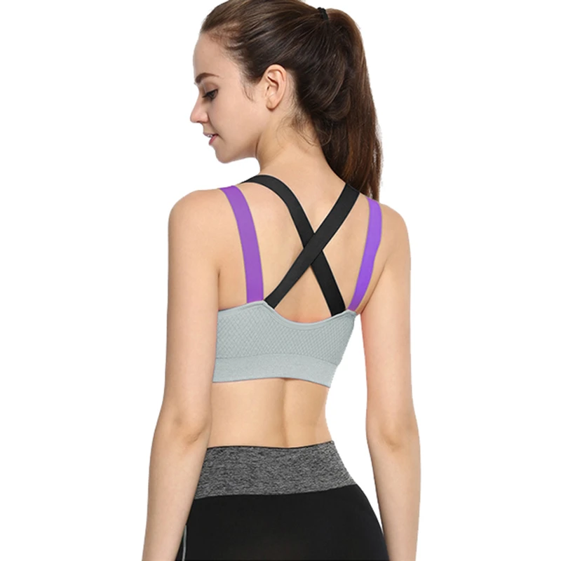Женщина крест ремешок йоги спортивный бюстгальтер Push Up Спортивный бюстгальтер тренажерный зал работает Фитнес быстросохнущая Мягкий прот...