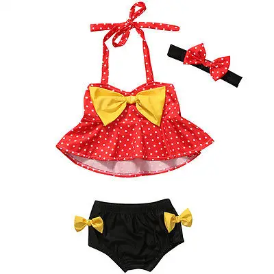 Лето 2017 г. маленьких Обувь для девочек От 1 до 4 лет Танкини комплект бикини Купальники для малышек Dot печати лук купальный костюм Пляжная оде...