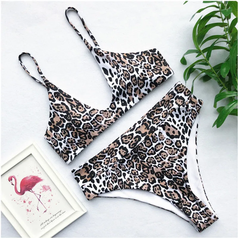 Летний женский комплект бикини пуш-ап, купальный костюм, однотонный бюстгальтер с высокой талией и подкладкой, купальник, эластичный купальник с леопардовым принтом, купальный костюм