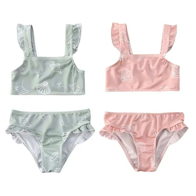 Новинка; летний детский комплект бикини с рюшами для маленьких девочек из 2 предметов; купальный костюм без рукавов с цветочным принтом; сти...