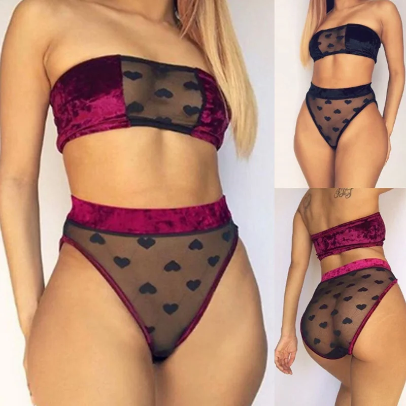 2 шт женское белье кружевное нижнее белье бикини сексуальное ночное белье Сердце сетчатая ночнушка набор набедренных повязок Новое Прозрач...