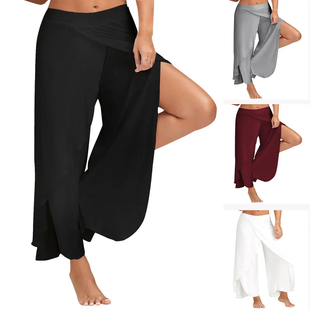 Йога брюки сексуальные талии широкие брюки-клёш от бедра женские повседневные летние Леггинсы Спортивные Длинные свободные брюки для заня...