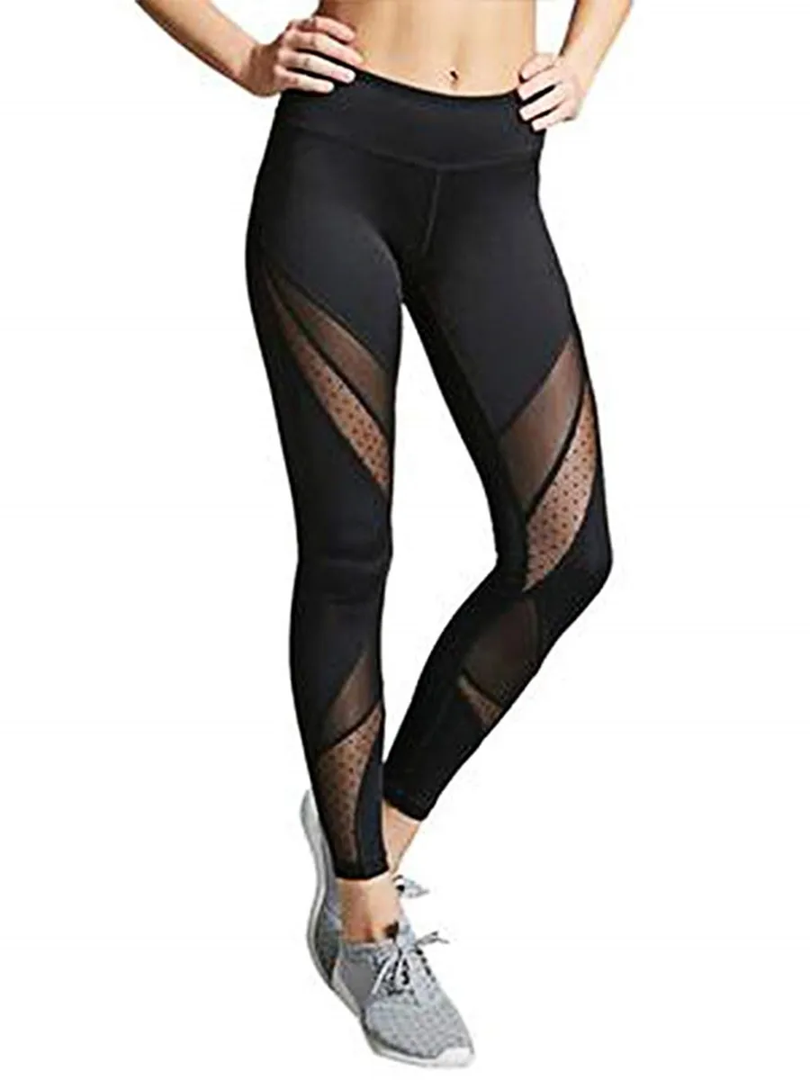 Женские сетчатые леггинсы с высокой талией сбоку обтягивающие спортивные лосины Йога брюки сексуальные сетчатые