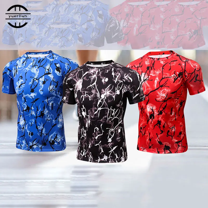 Распродажа компрессионные спортивные рубашка Фитнес Беговая Футболка короткий рукав бег футболка Для мужчин Training Спортивные жилетки Rashgard ...