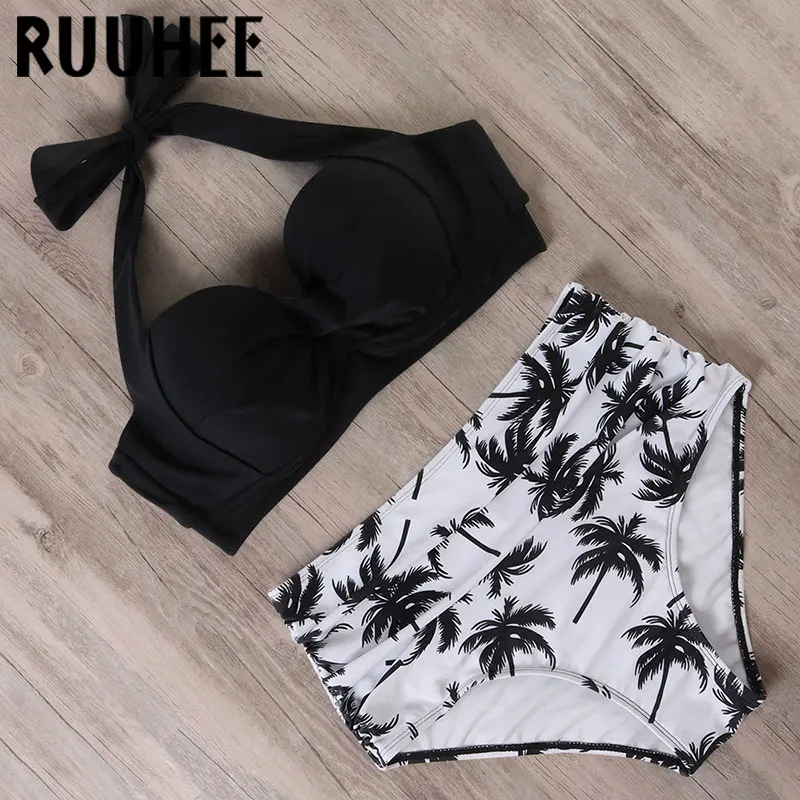 RUUHEE, Холтер, топ, высокая талия, бикини, 2020, Женский бандажный купальник, пуш-ап, купальник, Loepard, купальник, Maillot De Bain Femme