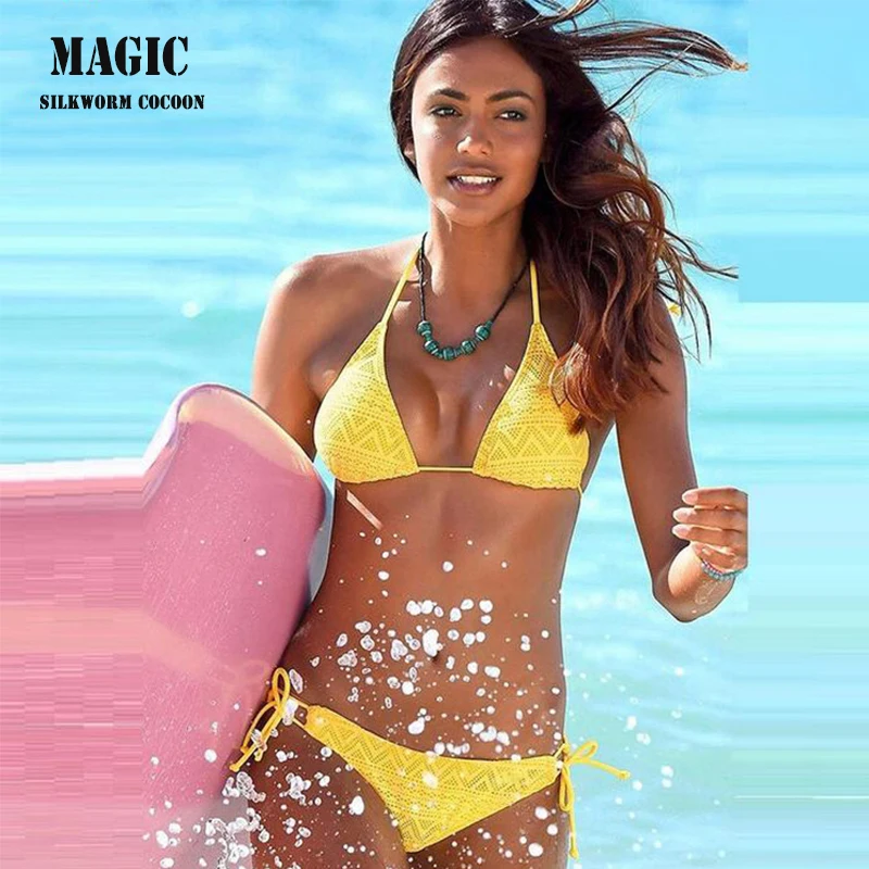 Бронзовая Ткань Бикини Новый Up Купальники для женщин Пляжная одежда пикантные цвет: желтый, Белый Лето купальник комплект бикини Push Для жен...