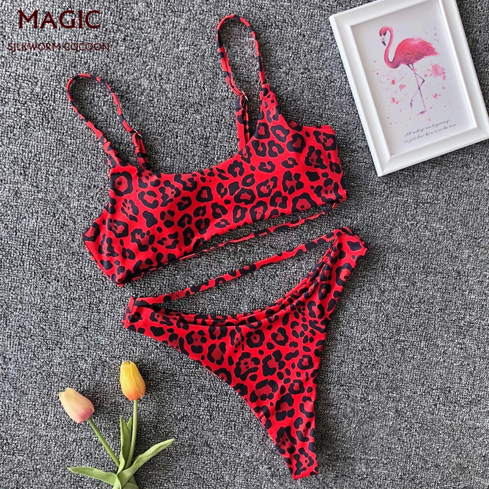 Сексуальные красные зеленые леопардовые бикини микро бикини набор Пуш-ап Тонги Biquini купальник с высокими плавками женские Мини-купальник ж...