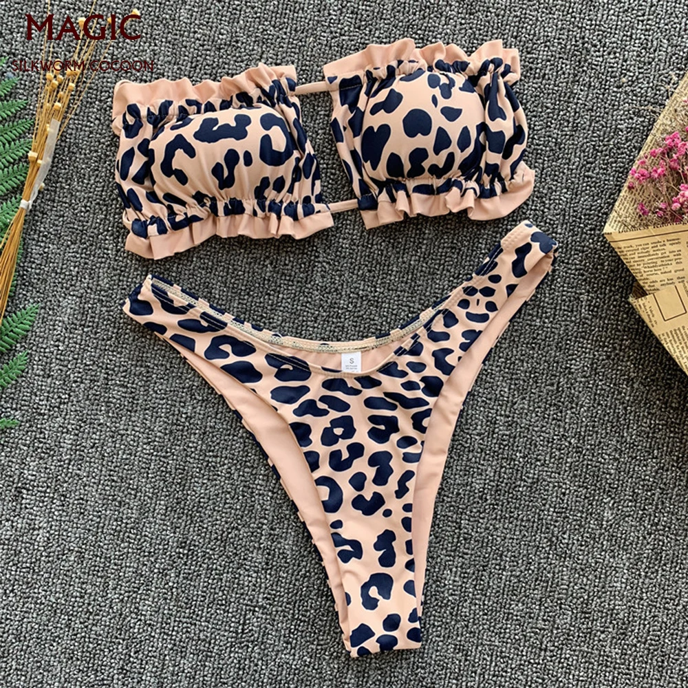 Пикантные леопардовый купальник костюм-Бикини для леди Для женщин пуш-ап купальники женские бикини с низкой талией бандажная пляжная одежд...