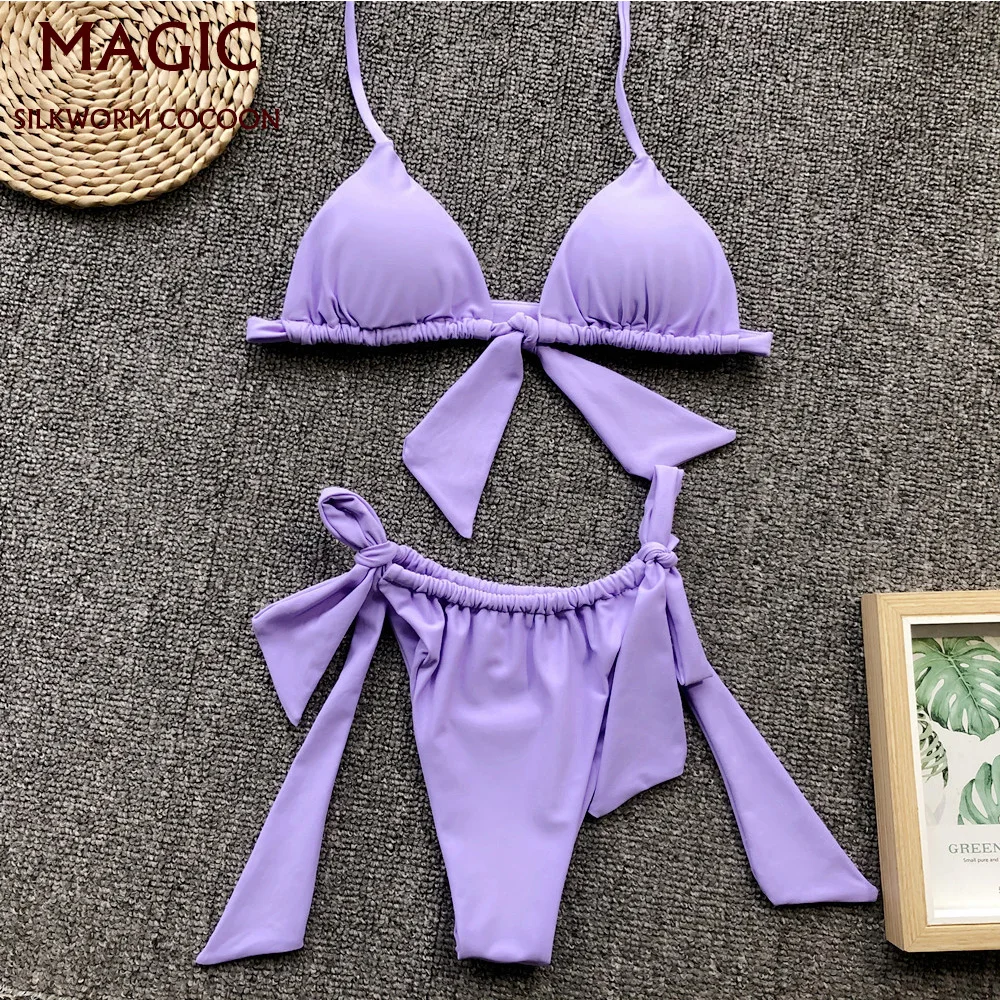 Бикини фиолетовый сексуальный купальник женский купальник пуш-ап Бразильский бикини комплект без бретелек Лето для пляжа для купания кост...