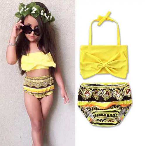 Детские Обувь для девочек плавать Костюмы из двух частей Купальники для малышек Высокая Талия бантом бикини пляж Купальники для малышек ле...