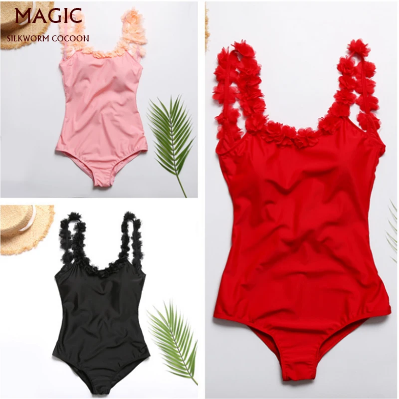 Новое поступление Купальники для женщин Цельный купальник 3D Цветочные Купальники розовый красный бикини пляжная одежда купальный костюм s ...