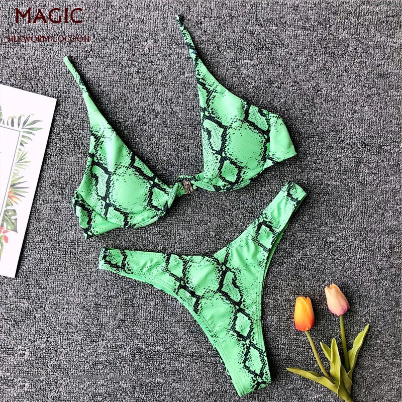 Новый змеиной печатных комплект бикини для женщин Высокая талия на косточках сбор Swimweare пикантные летние Бразильский купальный