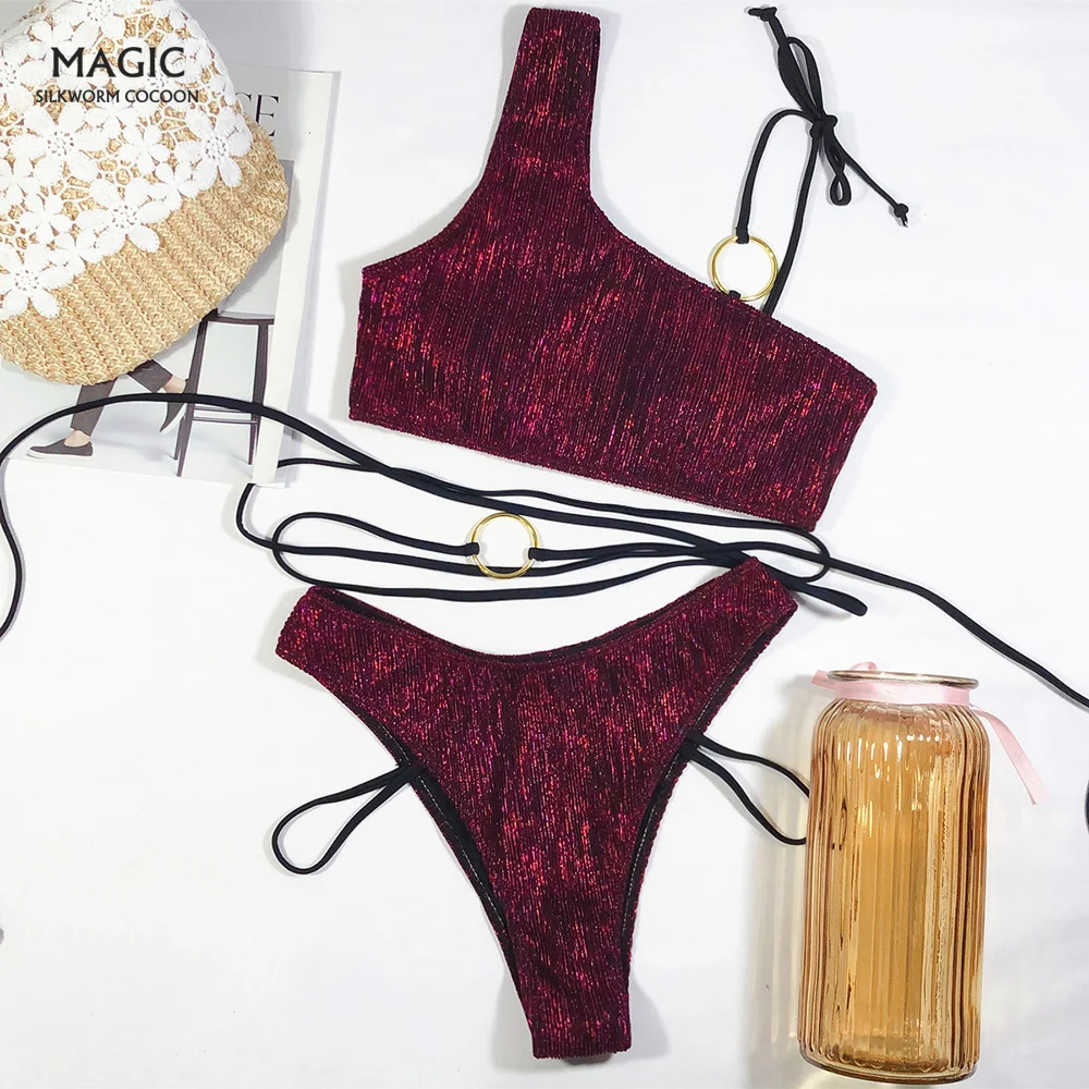 Новые женские на одно плечо цвета stitchingSexy бикини талии высокой талией пляжный купальник Танкини 2019 бикини