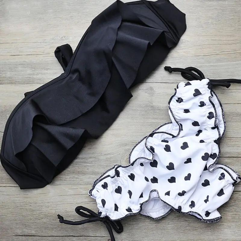 2019 цельные костюмы стринги бикини женские оборки с открытыми плечами Цельный купальник Купальники Пуш-Ап Монокини Купальный Костюм