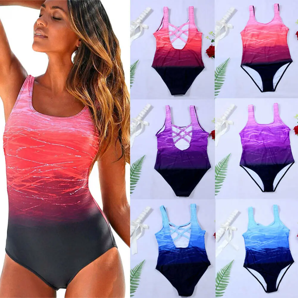 Женский градиент пуш-ап бюстгальтер Мягкий сексуальный комбинезон цельный бандажные бикини Монокини купальник Летний купальный костюм