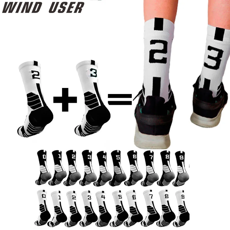 Профессиональные баскетбольные носки с номером 0-9, толстые спортивные носки, Нескользящие прочные носки для скейтборда