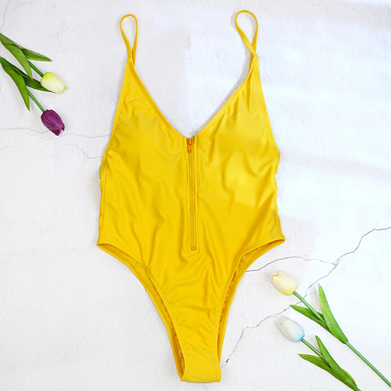 Женский купальник с глубоким v-образным вырезом и застежкой-молнией, красный, желтый, черный, белый цвета, новинка 2020