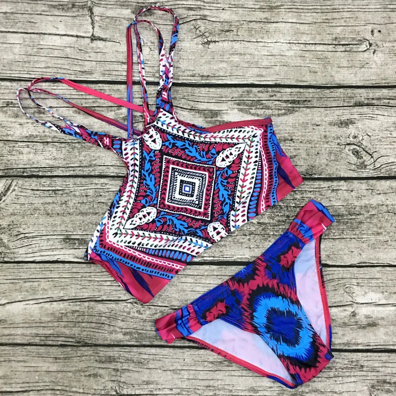 TOKITIND Tie Dye Бикини цветочный принт для женщин бикини с высоким вырезом Холтер Растениеводство Топ Бразильский Купальники для малышек Ретро ...