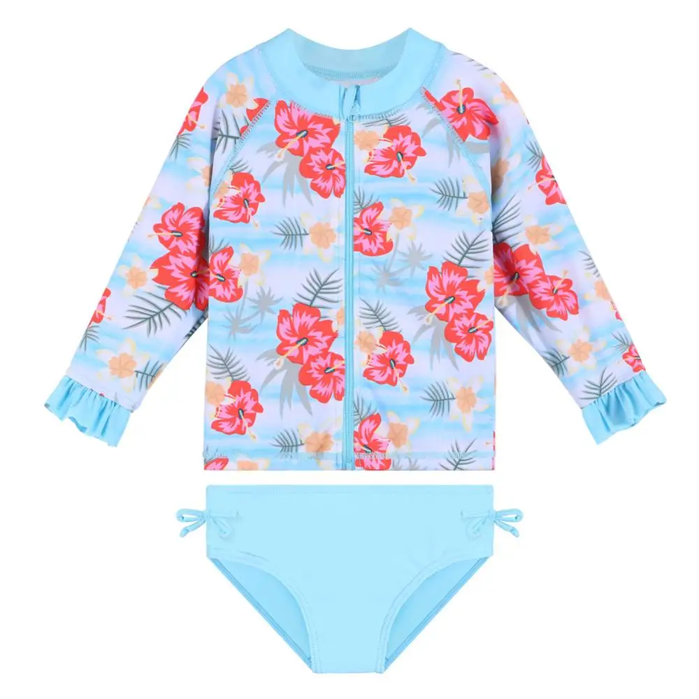 BAOHULU/детский купальный костюм с цветочным рисунком; детский купальник с оборками и рукавами для девочек; UPF 50 + купальный костюм; комплект из 2...