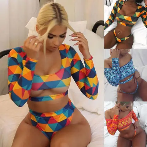 Летние пикантные Для женщин длинный рукав короткий пункт комплект бикини пуш-ап бинты Купальники Купальный костюм