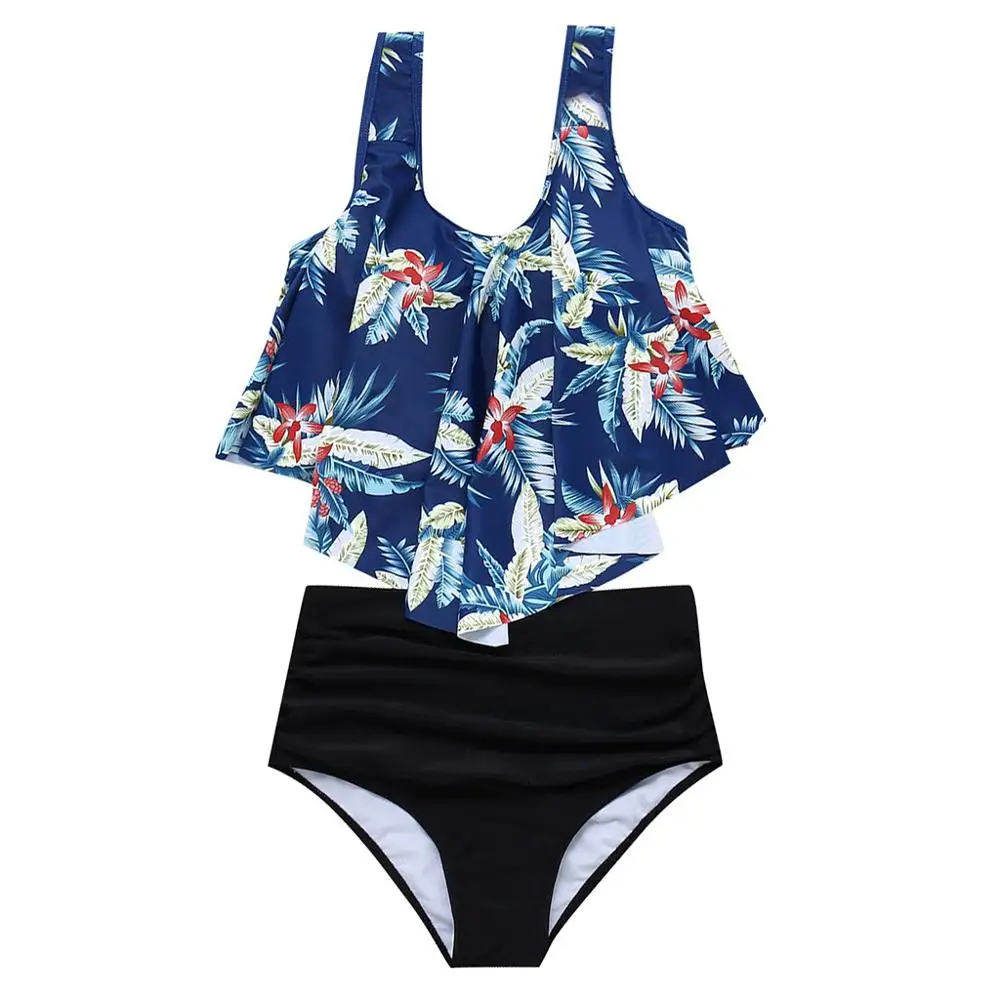Женский пикантный купальник для плавания, бикини, купальник, женский купальник, 2 предмета, купальный костюм, топ с оборками, шорты с высокой ...