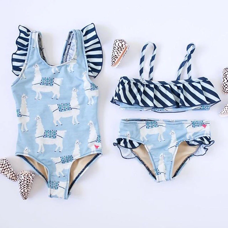Коллекция 2020 года, летний купальный костюм милый Принт с животными, пляжный купальный костюм для маленьких девочек купальный костюм с оборками купальный костюм комплект бикини, пляжная одежда