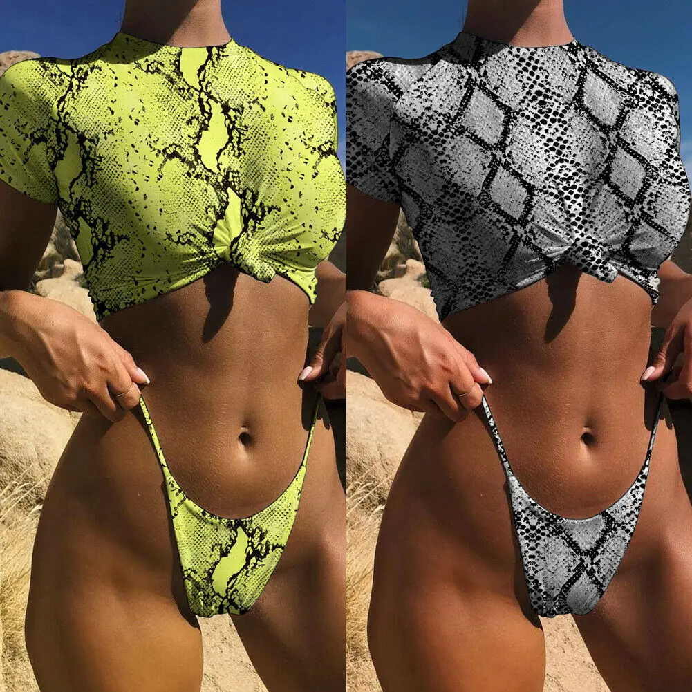 2019 Новый Женский Змеиный узор искушающее бикини костюм купальник сексуальный купальник