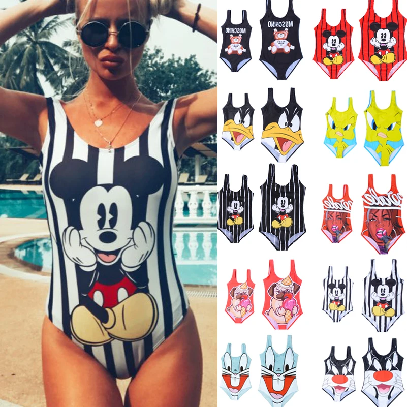 Семья подходящие купальники женщина 2019 Одна деталь мультфильм печатных бикини Микки ванный комплект Для женщин Одна деталь дочери купальн...