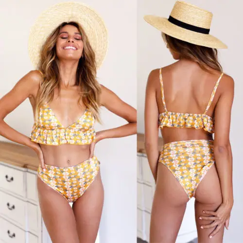 2018 новый сексуальный бикини Для женщин Цветочный Плавание костюм высокой талией купальники Плавание Push Up комплект бикини Мягкий бюстгальт...