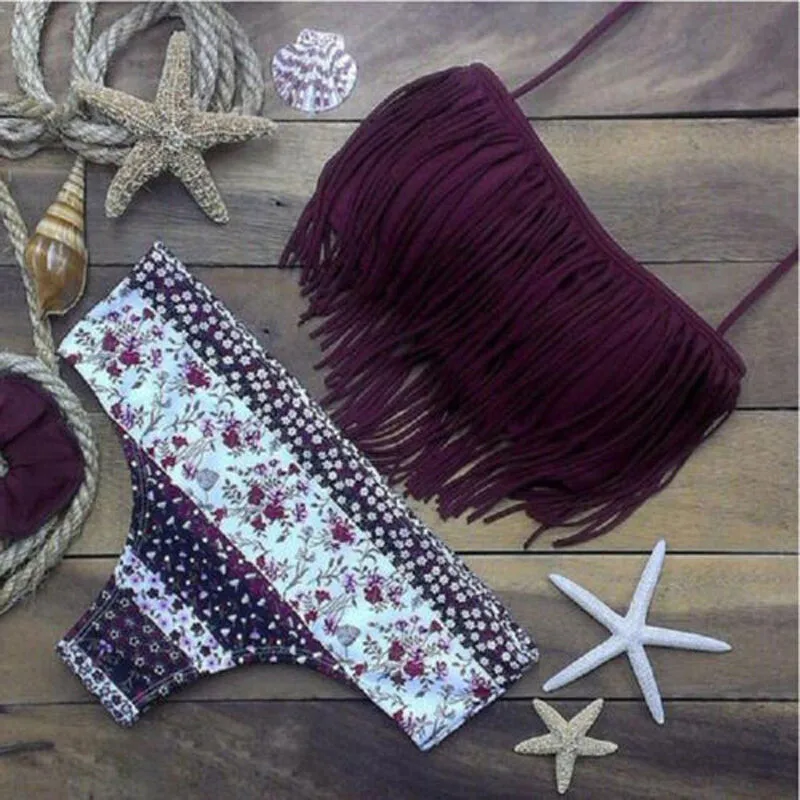 Купальники для малышек для женщин бикини 2019 бандо Мягкий Push Up Кисточкой купальный костюм комплект одежда заплыва костюм