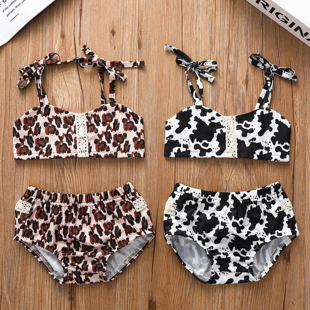 Летний детский комплект бикини с леопардовым принтом для маленьких девочек, детский купальный костюм с завязками для малышей, купальный костюм из двух предметов, Maillot De Bain 2020