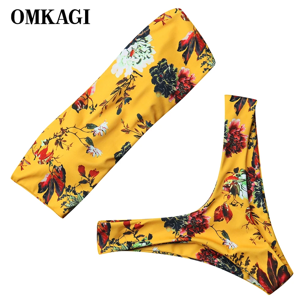 Бандо сексуальный бикини набор лимонный принт твист без бретелек провод свободный купальный костюм женский купальник купальный костюм для...
