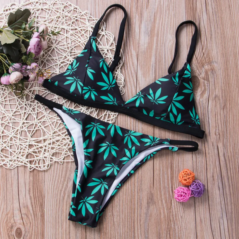 Женское трикотажное бикини, лето 2019, на бретельках, низкая талия, пуш-ап, бюстгальтер, бандаж, бикини, набор, купальник, треугольный купальник, купальный костюм