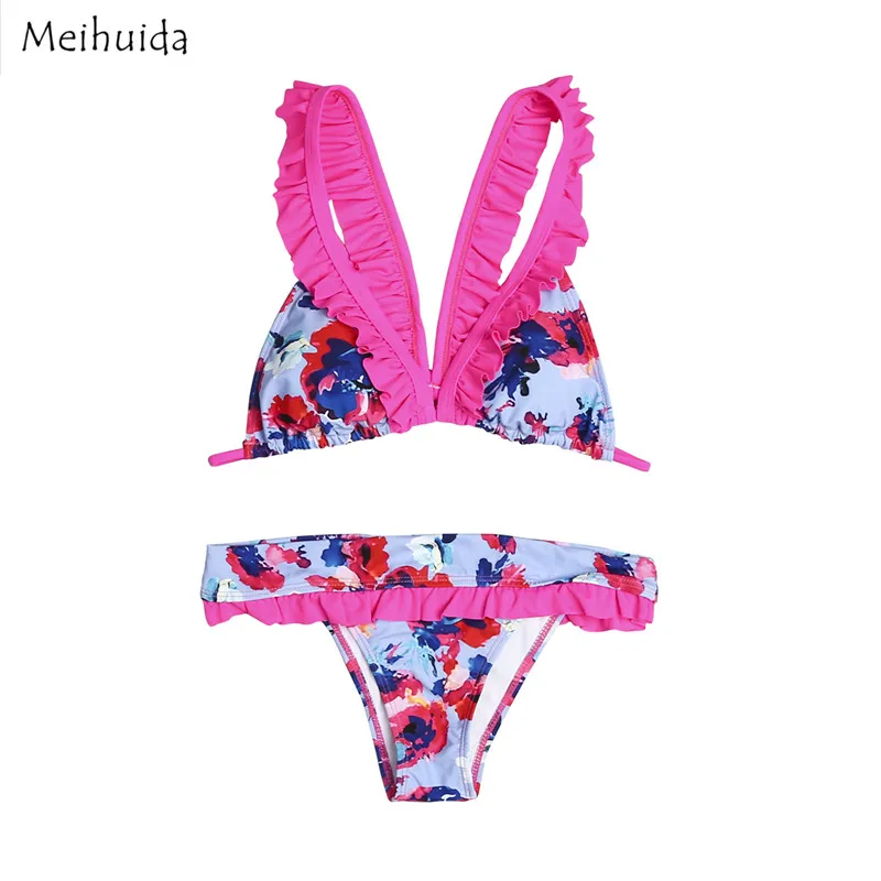 Сексуальный комплект бикини biquini Push Up Pad бюстгальтер бикини комплект сетки Тонкий Купальник микро с цветочным принтом Купальники Женщины 2018 бикини
