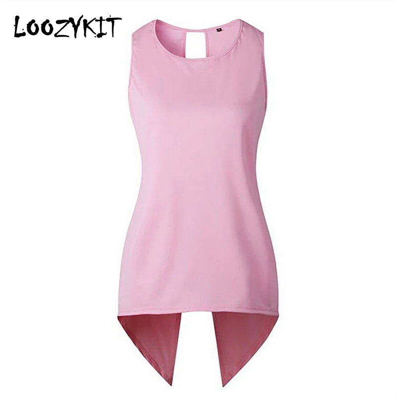 Loozykit женские футболки для йоги, футболка без рукавов с круглым вырезом, топ для фитнеса, свободный однотонный спортивный костюм, женская спо...