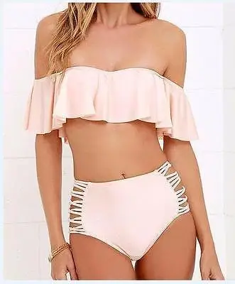 Горячая рябить бикини с открытыми плечами Трусики бикини Для женщин бандо Купальники для малышек стринги biquini Высокая талия купальный кост...