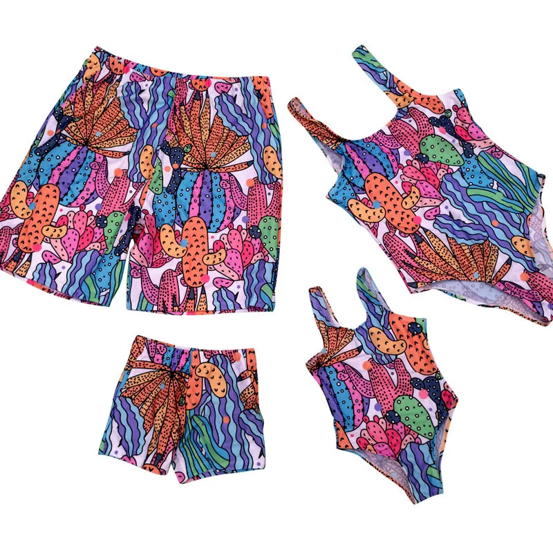 Mommy And Me/Цельные пляжные шорты для мальчиков; одинаковые комплекты для семьи; Цветной купальник с принтом кактуса; купальный костюм для мамы ...