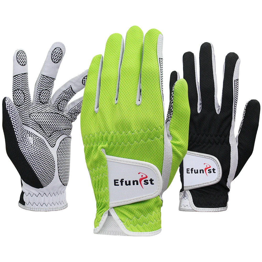 Efunist Гольф перчатки Мужские левая рука дышащий Зеленый 3D производительность сетка Нескользящие микро волокна перчатки для гольфа