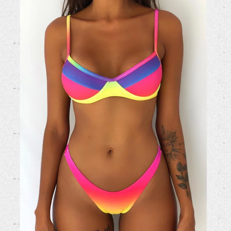2019 Новый женский комплект бикини с принтом пуш-ап, мягкие бикини и бюстгальтер, купальный костюм «Треугольник», пляжный купальник