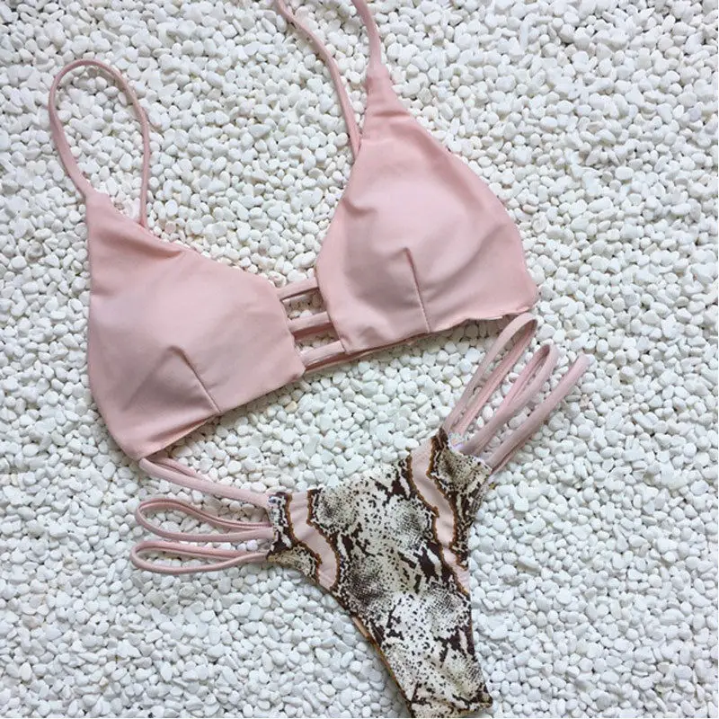 Женский сексуальный леопардовый цветочный Змеиный комплект бикини пуш-ап Мягкий купальник сексуальный купальник с высокой талией купальн...