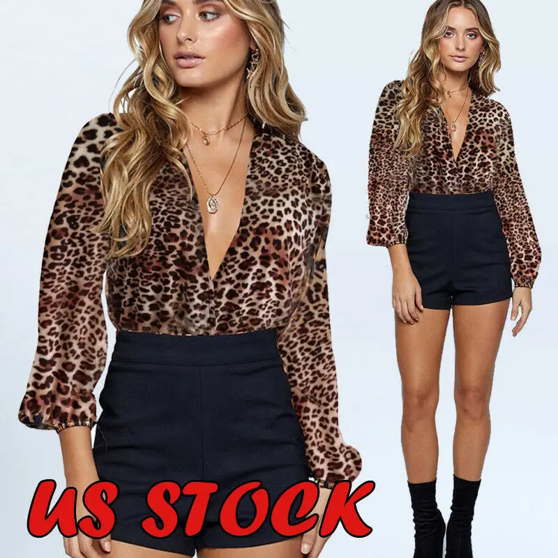 Женские леопардовые боди с длинным рукавом и v-образным вырезом, женские трико, женские топы, рубашки