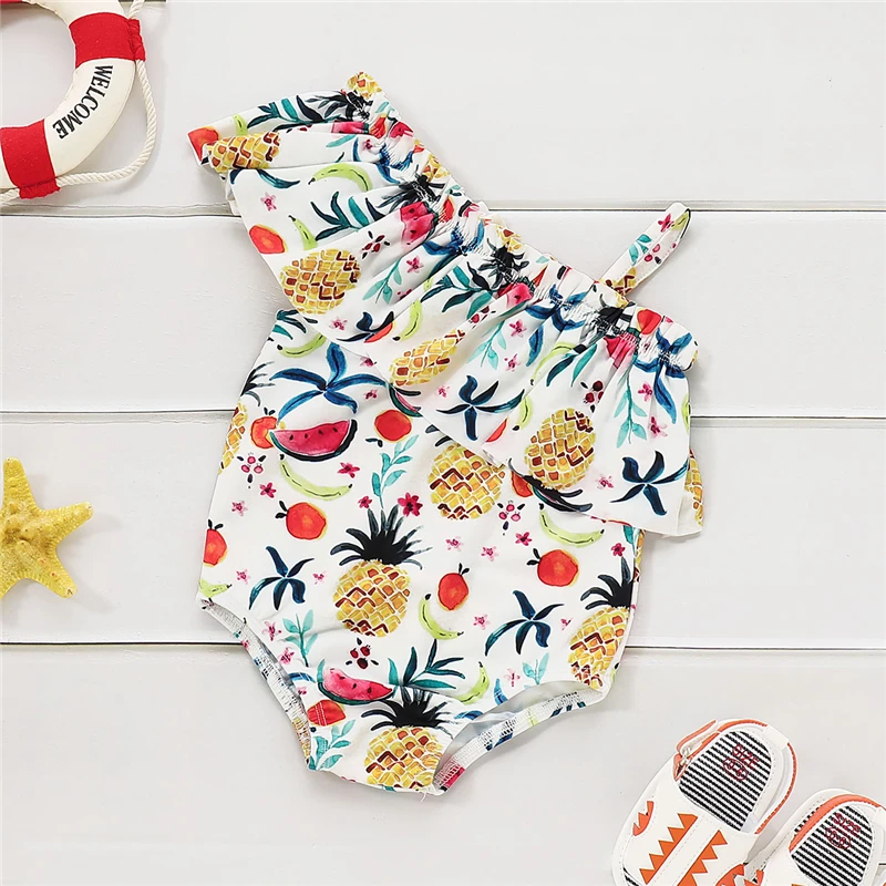 Новый для маленьких детей обувь девочек с фруктовым принтом одна деталь купальник, купальник Монокини бикини пляжная одежда Лето купальный...