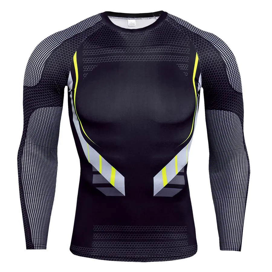 Компрессионные колготки Мужская рубашка для пробежек быстросохнущая футболка с длинными рукавами и принтом тренажерные залы Фитнес Топ дл...