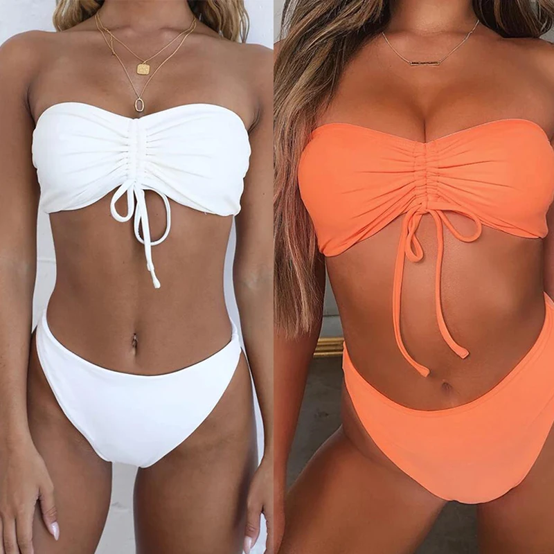 Hirigin, сексуальный комплект бикини с оборками, Женский Бандаж, пуш-ап, мягкие стринги, бикини, женский купальный костюм с бретелькой через шею,...