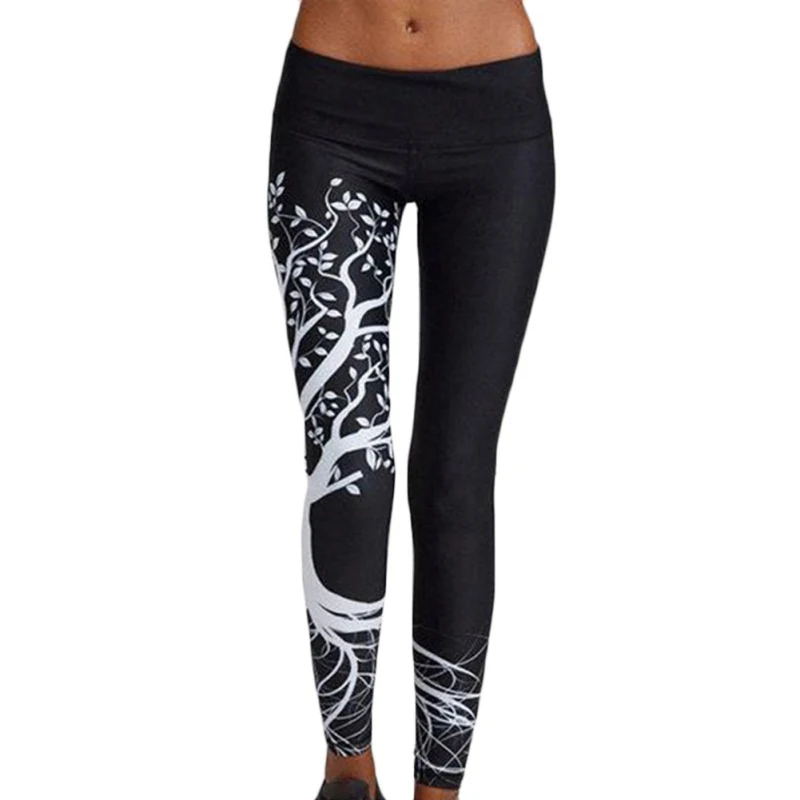 Женские штаны для йоги с принтом дерева, эластичные дышащие штаны с высокой талией и принтом для фитнеса Runningveym