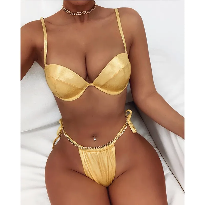 Женский пуш-ап бюстгальтер с мягкими чашечками бандажный комплект бикини купальник треугольный купальник купальные костюмы 2020 новые летни...
