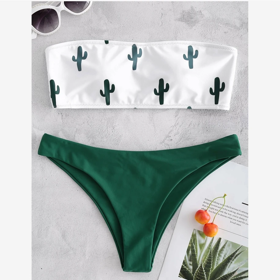 Новинка 2019 года пикантные Купальник бандо зеленый push up Купальник женский кактус печати бикини ванный комплект пляжные, Biquini микро