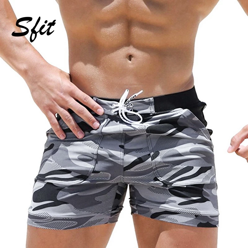 Sfit лето для мужчин's пляжные шорты одежда заплыва мужские шорты для купания быстросохнущие Drawstring фитнес тренировки свободные Камуфляж спор...